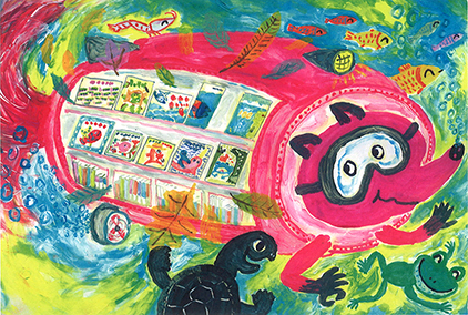はやしますみ 「たぬはらさんのどこでもとしょかん(偕成社 刊)」絵本原画展