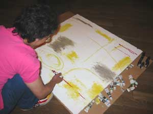 やっと完成!! 「僕の頭の中にあるどこかの景色です。」との事でした。 |