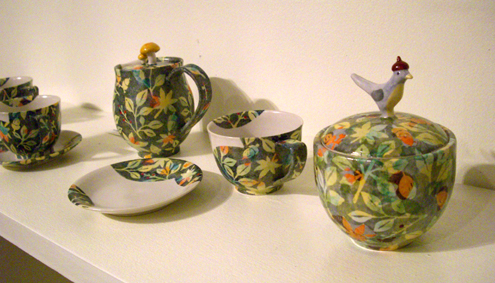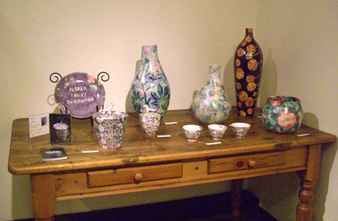 ふくろうの香炉(\8,400)、ほおずきの湯呑み(\4,200)、りんごの花器(\5,250)と蓋物(\3.990)