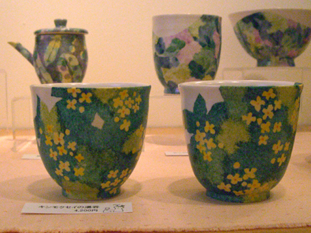 キンモクセイシリーズの蓋物(\6,300)、湯呑み(\4,200)など