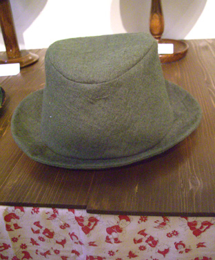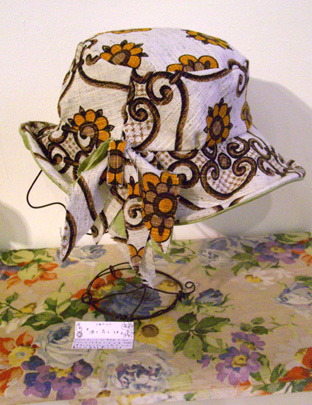 様々なタイプの帽子や布に描いた絵ハンカチなどを展示しています