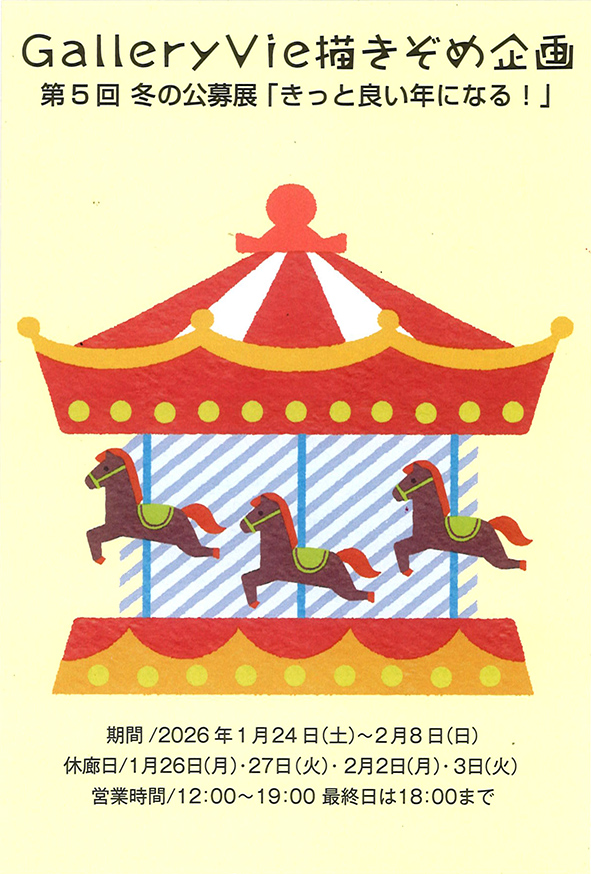 Gallery Vieのかきぞめ企画公募展は、今年5回目を迎えてすっかり年明けの作品展として定着してきました。